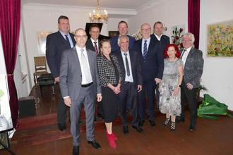 Während der Verabschiedung auf Schloss Grochwitz mit Peter Hans (vorne 3. v. l.) und Ministerpräsident Dr. Dietmar Woidke (vorne 3. v. r.) sowie weiteren Gästen.