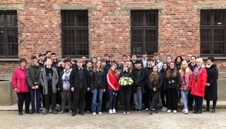 Der nächste Tag führte die Schüler in das ehemalige Vernichtungslager Auschwitz/Birkenau. Die Geschichte dieser düsteren Vergangenheit versetzte die Exkursionsteilnehmer in Fassungslosigkeit. Obwohl sie sich im Vorfeld intensiv mit dem Holocaust auseinandergesetzt haben, wurden sie von dem Gesehenen und Gehörten zutiefst ergriffen und legten an der Todeswand in Gedenken an alle dort gefallenen Häftlinge im Namen der Oberschule Falkenberg einen Blumenkranz nieder und verharrten in einer Schweigeminute.