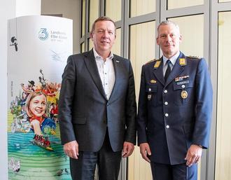 Landrat Christian Jaschinski hat heute (7. Mai) den neuen Kommandeur des Landeskommandos Brandenburg, Oberst Nikolas Scholtka, zu dessen Antrittsbesuch im Landkreis Elbe-Elster empfangen. Scholtka tritt die Nachfolge von Oberst Olaf Detlefsen an, mit dem der Landkreis in den vergangenen Jahren eng und vertrauensvoll zusammengearbeitet hat.