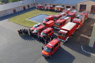 Mit insgesamt 15 Fahrzeugen starteten die Kameraden aus dem Landkreis am Feuerwehrtechnischen Zentrum in Herzberg.