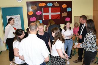 „In Elbe-Elster daheim, in Europa zuhause" – mit diesen Worten begrüßte die Schulleiterin Sabine Lundström die Gäste und kam auf den geschichtlich-politischen Hintergrund Europas, sowie auf die Europawahl zu sprechen. Sie selbst sieht die von Erasmus (Programm der EU für allgemeine und berufliche Bildung) geförderten Auslandspraktika als eine große Chance der persönlichen Weiterentwicklung, um neue Perspektiven kennenzulernen und Europa in seiner Vielfalt zu erleben. Anschließend betonte Landrat Christian Jaschinski in seiner Rede die Bedeutung von Bildungsaustauschprogrammen für die persönliche und berufliche Entwicklung der Schüler. Gerade das aktuelle Förderprogramm Erasmus+ soll lebenslanges Lernen fördern, nachhaltiges Wachstum ermöglichen, sozialen Zusammenhalt und die europäische Identität stärken sowie Innovationen vorantreiben. „Verwandeln wir gemeinsam und zum Nutzen Aller unsere Herausforderungen in Chancen! Dann bleibt Europa, was es heute ist: Ein guter Platz zum Leben und eine Kraft zum Guten in unserer Einen Welt“, so der Landrat abschließend.