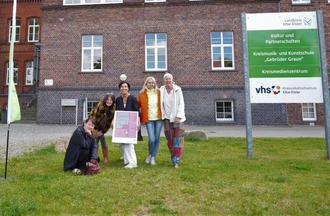 Von links: Marżenna Otto, Stephanie Mai, Claudia Mölle, Jolanta Krzyżek, Andrea Dürfers vor der Kreismusik- und Kunstschule Gebrüder Graun.