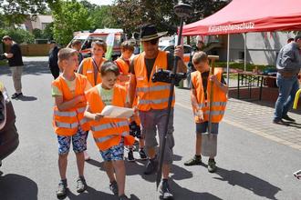Das Kataster- und Vermessungsamt ging mit Kindern auf Schatzsuche per Satellitennavigation.