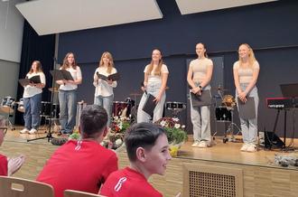 Musikalisch umrahmt wurde das Programm von den „Schlagfertigen“ unter der Leitung von Robby Fuchs, der Abiturientin 2023 Jolie Woköck und den Abiturienten Jonas Richter und Johann Richter. Die Impro-Slam-AG unter der Leitung von Julia Donth hat anlässlich des 75-jährigen Abiturs über ihren Schulalltag „geslamt“ und die Bedeutung von Bildung einmal mehr deutlich gemacht. Auf sehr beeindruckende Weise sprachen sie über den Druck, das Beste aus ihrem Leben machen zu müssen, über die Bedeutung der Eltern, welche auch nach einem Heimatverlassen nach dem Abitur immer da sein werden und über den Mut, sein eigenes Leben zu führen, es nach eigenen Wünschen und Vorstellungen zu gestalten und dabei mutig und gemeinschaftlich in die Zukunft zu blicken, Komfortzonen zu verlassen, um für das Leben zu lernen.