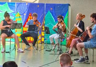 Besonders eindrucksvoll war nicht nur das hohe musikalische Niveau der Musikerinnen und Musiker, sondern auch der persönliche Kontakt zu den jungen Zuhörerinnen und Zuhörern. Die Schülerinnen und Schüler hatten die Gelegenheit, Fragen zu stellen und auf diese Weise einen lebendigen Zugang zur Welt der klassischen Musik zu gewinnen.