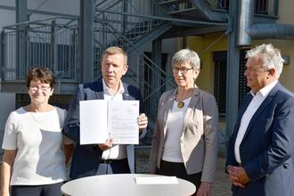 Der Umbau des Oberstufenzentrums (OSZ) Elbe-Elster in Elsterwerda zu einem Bildungszentrum geht in die nächste Phase. Die Chefin der Staatskanzlei, Ministerin Kathrin Schneider, hat am 15. September in Elsterwerda einen Förderscheck für den zweiten Bauabschnitt an Elbe-Elster-Landrat Christian Jaschinski übergeben. Mit rund 6,7 Millionen Euro aus dem Strukturstärkungsgesetz wird der OSZ-Standort Berliner Straße 52 ausgebaut. Der erste Bauabschnitt – der Ausbau des OSZ-Standortes Feldstraße 7 – wird seit Jahresbeginn mit 4,5 Millionen Euro aus Strukturstärkungsmitteln unterstützt. Die Gesamtinvestition „Bildungszentrum Elbe-Elster“ wird sich auf mehr als 13,2 Millionen Euro belaufen.
