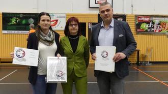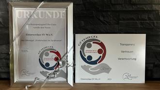 Im Rahmen des Handball-Heimspieles der Männermannschaft am 25.11.2023 in der Elbe-Elster Halle, bekam der Elsterwerdaer SV 94 e. V. durch Andrea Stapel, Referentin der Sportjugend Elbe-Elster und Falko Reichert, Vorsitzender der Sportjugend, das Gütesiegel im Kinderschutz überreicht. Virginie Klaus, Vorsitzende des Vereins, nahm die Ehrung stellvertretend für den Verein, seine Mitglieder und Übungsleiter entgegen.