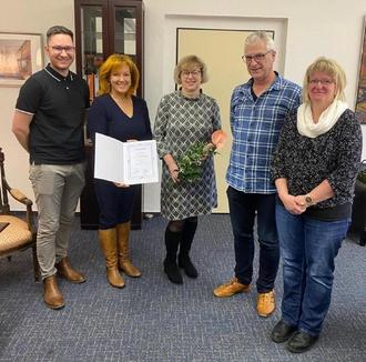 Zu den Gratulanten gehörten neben Bürgermeisterin Anja Heinrich und dem stellvertretenden Bürgermeister Ansgar Große auch die Leiterin des Ordnungsamtes, Sabine Kauder und der Vorsitzende des Personalrates, Hannes Simon.