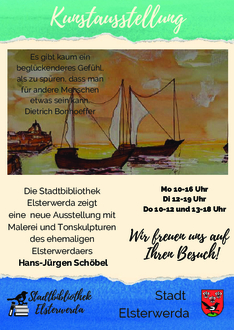 Am 09.11.2023, 17:00 Uhr findet die Vernissage zur Ausstellung in der Stadtbibliothek Elsterwerda statt und man kann bei einem Glas Wein den Künstler persönlich kennenlernen.