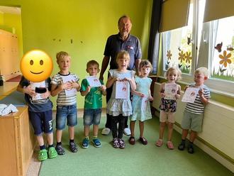 Die Verkehrswacht war zu Besuch. Verkehrserziehung im Kindergarten hat zum Ziel, die Kinder frühzeitig auf ein sicheres Verhalten im Straßenverkehr vorzubereiten.