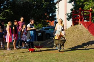 Einleitende Worte richtete Fr. Hauptvogel (Kita – Leitung) an die Kinder sowie zahlreichen Gästen des Festes und eröffnete das Oktoberfest mit einer Rede, wofür sie dankende Worte aussprach. Des Weiteren erhielt die Kita eine Auszeichnung. Sie dürfen sich ab sofort „Sonnenschutz Kita“ nennen. In den Sommermonaten absolvierten die Kinder ein Durchlaufverfahren unter dem Projekt „Clever in Sonne und Schatten für Kitas mit dem Sonnenschutzclown „Zitzewitz““. Jedes Kind erhielt eine Urkunde, was sie freudig stimmte. Strahlende Kinderaugen waren ersichtlich. Nach den ausdrucksstarken Worten von Fr. Hauptvogel folgte ein selbsteinstudiertes Programm von dem gesamten Erzieherinnenteam zum Tanz „Annemarie“. Freude mit großem Applaus sorgten für eine positive, stimmungshafte Atmosphäre. Auch die Kleiderordnung war schön anzusehen, die Erzieherinnen trugen passend zum Anlass ein Dirndl. Im Anschluss standen Stationen nach Oktoberfestrichtlinien zum Spaß zur Verfügung, z.B. Sackhüpfen, Hufeisenwerfen, Brezeln schnappen, Nägel in Baumstämme schlagen, … Bei einigen Stationen wurde die Zeit gemessen oder gerechnet. Das Durchlaufen der Stationen erfolgte im Kind – Eltern – Verfahren, dies führte zur spaßigen, aktiven Beteiligung. Zum späteren Zeitpunkt wurde der 1. – 3. Platz ermittelt, wofür es eine Belohnung gab.