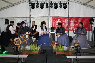 Auch in diesem Jahr wieder mit von der Partie waren die Damen und Herren der Erntegäste aus dem Fläming. Sie flanierten über das Festgelände, veranstalteten traditionelle Vesperpausen und bereicherten in einer ganz bezaubernden Art und Weise das Festgeschehen am Samstag und Sonntag mit musikalisch und gesanglichen Erzählungen auf der Bühne im Festzelt.