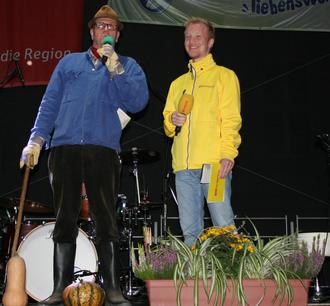 Comedian Bauer Heinrich Schulte-Brömmelkamp und Moderator Daniel Friedrich, das zauberhafte Moderatorenduo am Samstag