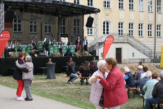 Hübsch in Trachten gekleidet begann das Kulturprogramm am Sonntag mit Andreas Bergener und seinen Schlossbergmusikanten, die zum zünftigen Frühschoppen vor der großen Bühne einluden und bereits zahlreiche Fans und Gäste auf das Festgelände zogen. Spätestens zum Auftritt von Roland Kaiser Double Steffen Heidrich strömten alle Generationen auf das Areal am Elsterschloss. Es wurde gesungen, getanzt und geklatscht. Und wer lieber Märchen als Schlager hört, kam im Festzelt bei der Aufführung von „Tischlein deck dich“ durch Pandels Marionettentheater voll auf seine Kosten. Eine kleinteilige Kulisse und liebevoll ge