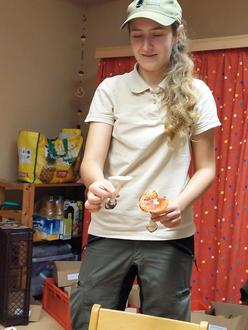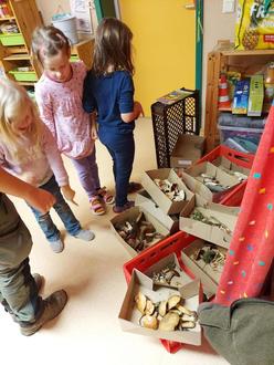 Nicola und Leonie von der Naturwacht haben uns ganz viele Kisten mit verschiedenen Pilzen zum Anschauen und Kennenlernen mitgebracht. Die kleinen Forscher unserer „Eichhörnchengruppe“ staunten, wie viele verschiedene Pilzarten es gibt. So schauten wir uns Schirmpilze, Steinpilze, die Krauseglucke, Puffpilze, den Hexenröhrling, Maronen, Sandpilze, Butterpilze, Kuhpilze (fühlen sich an wie Gummi) und einen Birkenporling genauer an. Wie sieht ein Pilz aus? Er hat Wurzeln, Stiel, Hut und unter dem Hut das Futter (Lamellen, Röhren, Poren, Sporen…). Gemeinsam haben wir die Pilze zerpflückt, um mal ins Innere zu schauen. Und siehe da, gerade sind viele Pilze madig. Heißt also, es wohnen Maden darin oder Würmer und die fühlen sich gerade sehr wohl. Unsere Lupen machten alles sehr gut sichtbar und die Kinder waren sehr interessiert und neugierig. Der Hexenröhrling färbte sich im Anschnitt von gelb ins blau. So ein tolles Farbenspiel. Alle lauschten den Erklärungen der Naturwacht. Wir durften auch einen Blick in die Kiste mit den Giftpilzen werfen. Da waren der gelbe Knollenblätterpilz und der Fliegenpilz zu erkennen. Der wohl giftigste Pilz überhaupt ist der grüne Knollenblätterpilz, wurde uns erzählt. In unserem Gruppenraum roch es wie im Wald nach Pilzen. Beim praktischen Teil im Freien haben wir auf einer Wiese „Pilz, Pilz wechsle dich“ gespielt. Denn es gibt so viele Schirmpilze zu dieser Zeit. Das hat richtig Spaß gemacht. Anschließend hat Nicola uns eine Pilzstraße gelegt und wir mussten uns immer zu den Pilzen gesellen, die sie uns genannt hat. Das war bei manchen Pilzen gar nicht so einfach, da sich manche sehr ähnlich sahen in der Farbe. Aber mit gegenseitiger Hilfe und Unterstützung konnten alle Kinder die Aufgaben meistern. Die kleinen Pilzkenner können ihren Eltern nun ganz viel berichten über unsere heimischen Pilze und bei einem Spaziergang im Wald mit den Eltern ihre Erfahrungen teilen. Pädagogisch wertvoll, sehr lehrreich und anschaulich war unser Vormittag und wir sagen ganz herzlich Dankeschön an Nicola und Leonie von der Naturwacht.