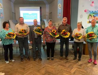 von links: Schatzmeisterin Regina Schuppe, Verbandsgartenfachberater Jörg Schlegel, 3. Vorsitzender Frank Semann, 1. Vorsitzende Claudia Schlegel, 2. Vorsitzender Holger Kesselschläger, Schriftführerin Elke Schultz, Beisitzerin Diana Fetter