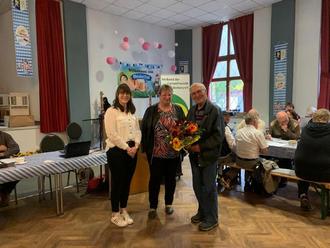 : von links: Sophie Bartel, 1 Vorsitzende Claudia Schlegel, Walter Gottschling (40 Jahre Vorsitzender KGV Am Sportplatz Missen e.V.)