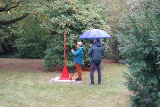 Frau Heinrich eröffnet mit dem Designer Uwe Schaffranietz und Herrn Walter den Pfad