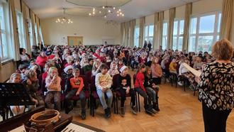 Frau Vetter hat es verstanden, die althergebrachte Weihnachtsmusik aufzupeppen und so alle Kinder für das Singen in unserem Weihnachtschor zu begeistern.