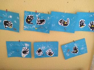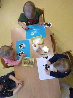 Mit einem Handabdruck und anderen Materialien entstand ein Vogel, welcher von den Kindern „gefüttert“ wurde.