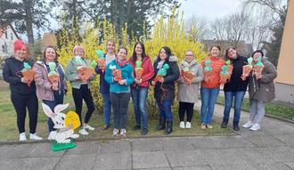 Bald wird wieder Ostern sein. Zu diesem Anlass hatte das Team der Kita zum gemeinsamen Osterbasteln in die Kita eingeladen. Viele Eltern kamen und haben in gemütlicher Runde mit den Erzieherinnen die „Ostermöhren“ statt der üblichen Körbchen für die Kinder gebastelt. Die Möhren wurden mit Sandförmchen und kleinen Leckereien gefüllt, es wurde geplauscht und alle konnten stolz in frühlingshafter Kulisse ihre Ergebnisse präsentieren.