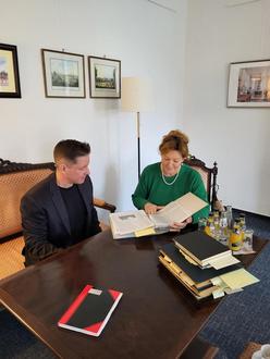 In der ersten Aprilwoche besuchte Hannes Walter, Bundestagsabgeordneter für Elbe-Elster und Oberspreewald-Lausitz, Bürgermeisterin Anja Heinrich in Elsterwerda für ein Arbeitsgespräch. Bürgermeisterin Anja Heinrich informierte Hannes Walter über neue Projekte, wie den Ausbau der Feuerwehr in Kraupa. Dort benötigt die freiwillige Feuerwehr einen neuen Anbau für eine Umkleide und eine Garage. Dafür werden Fördermittel von etwa 400.000 Euro benötigt, damit schon im Sommer mit dem Bau begonnen werden kann. Ein weiteres Thema war der Stand der geplanten Ortsumgehungsstraße der B 101 und B169. Seit nun etwa 30 Jahren wird der Ausbau gefordert und geplant. Die Notwendigkeit für den Ausbau der Umgehungsstraßen ist seitdem nicht gesunken. "Es sind die Städte und Gemeinden, in denen die Politik oft erst wirklich auf den Menschen trifft. Deshalb sind mir die Gespräche und Einsichten mit den Amtsträgern vor Ort besonders wichtig. Der Austausch mit Bürgermeisterin Anja Heinrich ist für meine Arbeit als Bundestagsabgeordneter eine echte Bereicherung. Wir werden uns auch in Zukunft gemeinsam für Elsterwerda einsetzen", so Hannes Walter über den Besuch bei Bürgermeisterin Heinrich.
