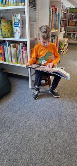 Gemeinsam mit ihrer Erzieherin ging es in die Stadtbibliothek. Dort angekommen wurden wir ganz herzlich von Frau Czyply und ihren Kollegen begrüßt. Frau Czyply erzählte und erklärte uns, wie so eine große Bücherei funktioniert. Danach führte sie uns durch einzelne Gänge, wo sehr viele Bücherregale mit den unterschiedlichsten Büchern standen. Das war wirklich faszinierend. Natürlich durfte eine kleine Geschichte nicht fehlen. Wie im Kino wurden wir vor einer großen Leinwand platziert. Während uns die Geschichte vom kleinen „NEINHORN“ vorgelesen wurde, konnten wir die vorgelesenen Situationen bildlich anschauen. Das war schön. Zum Schluss durften wir uns aus den vielen Büchern unsere Lieblingsbücher aussuchen und anschauen. So ging ein toller, wissenswerter Vormittag zu Ende und es ging wieder in die Kita zurück.