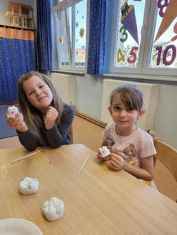 Auf spielerische Art und Weise begleiteten sie uns mit verschiedenen Angeboten durch den Vormittag. So wurden unter anderem liebevoll Zähne mit „Karies“ vorbereitet. Unter genauer Anleitung und viel Spaß gelang es den Kindern diese zu „behandeln“. Mit viel Geduld und Einfühlungsvermögen ist es dem Team super gelungen, dieses so wichtige Thema, den Kindern näher zu bringen. Sie erklärten auch, dass wir die Zähne brauchen, um zu kauen, zu sprechen und damit die bleibenden Zähne am richtigen Platz erscheinen. Den Abschluss des Tages bildete das gemeinsame Zähneputzen mit „Willi“.