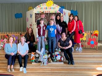 Genau so hatten es die geflüchteten Menschen hier erlebt, helfende Hände beim Ankommen in ihrer neuen Umgebung. Mit dem Theaterstück wollten sie etwas davon zurückgeben. Die Belohnung waren fröhliche Kinderaugen und ein herzliches Dankeschön der Schulleitung für die Übergabe des Puppentheaters und der handgefertigten Puppen.