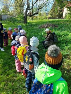 Alles wurde genau unter die „Lupe“ genommen wie z.B. die Wollspinne, Marienkäfer, Mistkäfer, Regenwürmer, Schnecken, Schlammfliegen, Zitronenfalter und Pflanzen wie das Schöllkraut, Blutpilze, der Löwenzahn in seinen vielen Phasen des Wachstums und die heimischen Bäume wie Kastanie, Weide, Erle und Eiche. Es gab sogar einen Erste-Hilfe-Tipp für verletzte Bäume. Ein abgebrochener Zweig wurde mit Hilfe langer Grashalme wieder repariert. Die Kinder lernten auf Bildern unsere heimischen Vögel kennen, lauschten ihrem Zwitschern und erkannten diese auf den Bäumen wieder. Gemeinsam besprachen wir die Regeln im Umgang mit der Natur, was die Schilder an Bäumen bedeuten und welche Vielfalt unser Naturpark „Niederlausitzer Heidelandschaft“ zu bieten hat. Wir sind eine zertifizierte „Naturparkkita“ und freuen uns schon auf den nächsten Ausflug in die Heide. Vielen Dank Frau Glaser, für den Tag mit viel Spaß, Spiel und Natur pur.