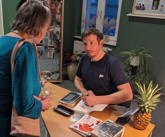 Die ausnahmslos weiblichen Gäste der Krimilesung verfolgten aufmerksam die gelesenen Textpassagen und ersehnten, den Ausgang des Buches zu erfahren. Im Anschluss an die Lesung stand der Autor für Fragen zur Entstehung des Buches bereit und signierte gekaufte Bücher mit persönlicher Widmung. Der als Cosy-Krimi bezeichnete Roman ist im Mitteldeutschen Verlag bereits in der 2. Auflage erschienen und umfasst 248 Seiten. Für Nutzerinnen und Nutzer steht der Krimi in der Ausleihe der Stadtbibliothek Elsterwerda zur Verfügung.