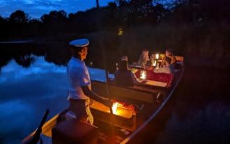 Ruhe kehrt ein, entlang der Wasserwege und im Spreewald. Die untergehende Sonne tauchte alles in ein warmes goldenes Licht und langsam blinzelte auch der Mond. Die Gemeinde Burg zeigte sich in der abendlichen blauen Stunde mystisch und geheimnisvoll. Dennoch konnte die nächtliche Kahnfahrt den fröhlichen Vereinsmitgliedern ihr geselliges Miteinander nicht nehmen. Bei gutem Trunk, Spreewälder Gurken und den beliebten Fettbemmen war es ein rundum wohlfühlendes Programm einer besonderen Reise.
