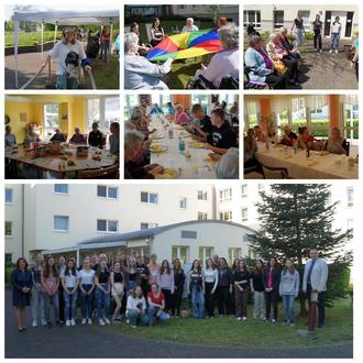 Die Schülerinnen und Schüler wurden durch das Leitungsteam der pro civitate Senioreneinrichtung und durch die Bürgermeisterin im Elsterwerdaer Stadtteil West empfangen. Das nach einer umfangreichen Sanierung im Jahr 2004 seniorengerechte Haus bietet 114 vollstationäre Pflegeplätze und 2 Kurzzeitpflegeplätze in Einzel- und Doppelzimmern an.