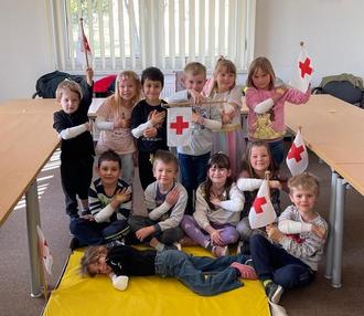 Um für den Notfall gewappnet zu sein, ging es für die Gruppe in die DRK – Geschäftsstelle nach Elsterwerda Biehla. Dort wurden die Bastelmäuse bereits von Herrn Reinsch (Notfallsanitäter) erwartet und begrüßt. Herr Reinsch führte die Gruppe in einen großen Raum, wo bereits verschiedene Materialien wie Pflaster und Verbandbinden zu sehen waren. Für diesen Tag stand also ein „Kinder – Erste – Hilfe – Kurs“ auf dem Programm.