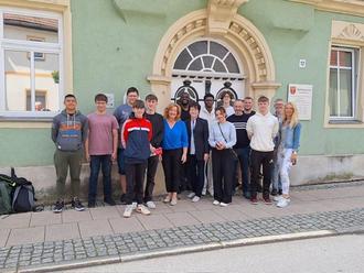 Neben einem Sprachkurs stehen in der ersten Woche verschiedene Exkursionen auf dem Programm. So empfing uns am Dienstag, den 04.06.2024 im Beisein der Schulleiterin Frau Lundström, die Bürgermeisterin Frau Anja Heinrich im Trausaal des Rathauses, und stellte den Gästen unsere Heimatstadt Elsterwerda vor. Danach öffnete sie mit Pfarrer Rene Herrmann und Silke Hauptvogel für uns sogar die alte Pforte der Stadtkirche Sankt Catharina und lud uns im Anschluss zu einem leckeren Eis ein.
