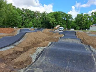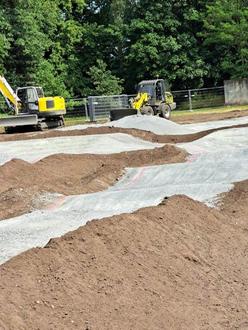 Pünktlich am 05.06.2023 startete der Bau der in unserer Region einzigartigen Pumptrackanlage auf dem Areal des Sportzentrums „Holzhof“. In nur wenigen Tagen war der ehemalige Fußballplatz mittels großer Fahrzeugtechnik verladen und zu einer Deponie abtransportiert.