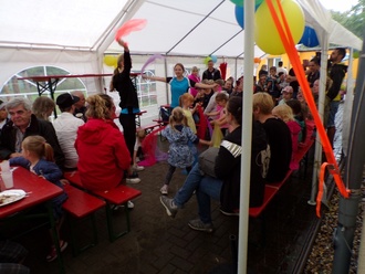 „Bei schönem Wetter kann jeder!“ So dachten auch das Team, die Kinder und alle Besucher des Sommerfestes. Schließlich konnten alle seit Wochen an nichts Anderes denken und haben geplant und organisiert. Bereits am Vormittag veranstaltete unser lieber Hausmeister mit allen Kindern und Erziehern Rundfahrten übers Kitagelände mit dem Anhänger. Am Nachmittag dann fanden alle Besucher Platz im großen Zelt der Feuerwehr Hohenleipisch und konnten so bei Kaffee und Kuchen beisammen sitzen. Danke an dieser Stelle an alle Eltern, die uns so tatkräftig mit ihren tollen Kuchenkreationen unterstützt haben. Die geplanten Aktivitäten für die Kinder wurden kurzer Hand ein wenig umgeplant und nach Drinnen verlegt. So gab es das Kinderschminken, welches mit großem Andrang besucht wurde, Dosenwerfen, was zuvor als Torwandschießen gedacht war (danke an Familie Bormann) und ein Glücksrad mit tollen Preisen. Später wurde für das leibliche Wohl mit Bratwurst und Hotdogs gesorgt. Auch der Getränkestand wurde trotz kühlem Wetter gut besucht. Ein kleines Programm gab es zusätzlich vom TSC Sportensemble Elsterwerda e.V., bei dem unsere Kitakinder zeigen konnten, was sie bisher gelernt haben. Die von den Geldspenden geplanten Aktivitäten, wie das ASB-Spielmobil und die neu gekauften Fahrzeuge für die Fahrzeugrallye, mussten aufgrund des Wetters verschoben werden. Diese Höhepunkte werden zu einem späteren Zeitpunkt für die Kinder an einem Vormittag nachgeholt. Für dieses Entgegenkommen möchten wir uns ebenfalls sehr bedanken. Wir danken allen Unterstützern und Sponsoren, die unser Glücksrad zum diesjährigen Sommerfest mit attraktiven Preisen und Geldspenden ausgestattet haben.