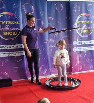 Die Kinderaugen strahlten als es hieß: „Heute erleben wir eine faszinierende Welt der Seifenblasen“. Kaum begann die Veranstaltung, wurde es still im Raum. Das Zaubern von verschiedenen großen und kleinen Seifenblasen, Seifenblasenvulkanen, einen schwebenden Seifenblasenteppich oder Seifenblasenwürfeln machte neugierig und vermittelte positive Emotionen bei den Kindern. Die Kinder, die sonst eine sehr kurze Aufmerksamkeitsphase haben, wurden plötzlich ruhig und versanken in die Welt der Seifenblasen. Als Höhepunkt wurden die Kinder selbst Teil der Show.