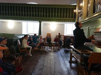 Im April hatte die Stadtkirche Elsterwerda ihr Schmuckstück eingeweiht: die Orgel. Von deren tollen Klang konnten sich die Kinder der Gruppe 3 auf Anregung der Pfarrerin Frau Zott jetzt selbst überzeugen. Mit der Stadtlinie fuhren sie die „große Runde“, erkannten dabei prägnante Orte der Stadt und das eine oder andere Zuhause. An der Kirche wartete schon der Kantor Herr Hendel und begrüßte sie freundlich. Wie staunten die Kinder als beim Öffnen des Spieltisches ein kleiner verschlafener Igel hervorlugte. Mit seiner Hilfe erklärte Herr Hendel, wie so eine Orgel funktioniert und führte vor, wie unterschiedlich sie klingen kann. Bei einem gemeinsam gesungenen Lied konnten die Kinder den Unterschied zwischen hohen und tiefen, sanften und vollen Tönen direkt hören. Sie erfuhren auch, dass die Orgel ein Instrument ist, welches mit Händen und Füßen gespielt wird. Spätestens als sie selbst mal probieren konnten, waren alle hin und weg. Vielen Dank an Herrn Hendel, der mit seinem Igel „Pieksi“ die Kinder so toll in diese völlig unbekannte Welt der Musik eingeführt hat. Das von einer Mama gesponserte Eis im nahen Eiscafe Italia setzte dem Tag dann noch die Krone auf.