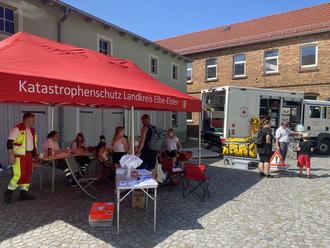 Selbst der Innenhof des Rathauses erschloss sich im Festprogramm mit einem großen Angebot des DRK Bad Liebenwerda. Hier erfuhr man viel Wissenswertes zur Lebensrettung und Notfallversorgung des Kreisverbandes.