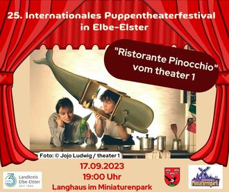 Am Sonntag, den 17. September, 19:00 Uhr, im Langhaus des Miniaturenparks Elsterwerda spielt das „theater 1“ das Stück „Ristorante Pinocchio“.