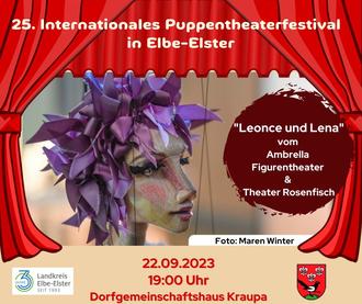 Zum Ende der Festivalwoche begrüßen wir dann am Freitag, dem 22.09., 19:00 Uhr das „Ambrella Figurentheater & Theater Rosenfisch“ zur Aufführung des Stückes „Leonce und Lena“ im Dorfgemeinschaftshaus Kraupa.