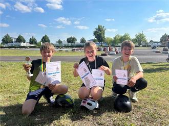 Am 25. Juni haben ausgewählte Viertklässler des Elsterschulzentrums am Kreisausscheid „Könner auf dem Fahrrad“ auf dem Verkehrsübungsplatz der Kreisverkehrswacht in Finsterwalde/Massen teilgenommen. Qualifiziert haben sich Amos Thieme, Eugenia Matusevych und Fynn Heiner, da sie bei der Radfahrausbildung in der Schule die besten Ergebnisse erzielen konnten. Beim WeRbewerb konnten sich die Schüler*innen in drei verschiedenen Disziplinen beweisen. Beim Parcours war es eine große Herausforderung, zwischen Holzblöcken entlang ein großes „S“ zu fahren, mit einer KeRe in der Hand im Kreis zu fahren oder sich während des Slalomfahrens eine Zahl zu merken. Im Anschluss war es die Aufgabe der Teilnehmer*innen, besonders langsam über 10 Meter zu fahren. Von allen Kindern gelang es Amos mit einer Zeit von 33 Sekunden, am langsamsten zu fahren, womit er den Einzelsieg in dieser Kategorie erzielen konnte. Zum Schluss musste die Gruppe noch einen Wissenstest absolvieren. In der Gesamtwertung der Gruppen belegten die Kinder als Vertreter des Elsterschulzentrums den 4. Platz. In der Einzelwertung, bei der alle Disziplinen berücksichtigt wurden, gelang es Amos Thieme, den 2. Platz zu erzielen. Damit hat er sich als einer von drei Kindern für den Landesausscheid in Potsdam im September qualifiziert. Bei diesem treten die drei besten Fahrradfahrer aus allen Kreisen des Landes Brandenburg an.