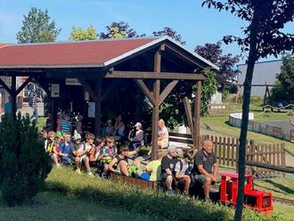 Die Parkeisenbahn ist ein ständiger Besuchermagnet und das nicht nur für Kinder. Auch an diesem Tag stand sie nicht still und Lokführer Enrico Schröter musste mit einem Lächeln um kleine Pausen bei den Kids bitten.