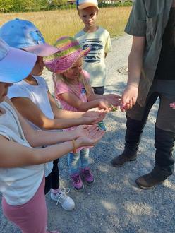 Gemeinsam mit den Rangern Nicola und Tino von der Naturwacht ging es auf eine interessante Entdeckertour auf eine Wiese nicht weit abseits der Kita und einen angrenzenden Wald.