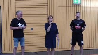 Nach insgesamt vier Turnierspielen pro Sporthalle fanden sich alle Mannschaften zur offiziellen Begrüßung in der Elbe-Elster-Halle ein. Hierbei übernahm zu Beginn Knut Fechner, zweiter Vorsitzende des Elsterwerdaer SV 94, das Wort. Im Anschluss folgten begrüßende Worte der Bürgermeisterin Anja Heinrich, welche sich für das Engagement des Elsterwerdaer SV 94 und für die Teilnahme der Mannschaften bedankte. Zuletzt gab Tim Romanowsky, Mitglied des Organisationsteams, noch kurze Informationen zum weiteren Turnierablauf.