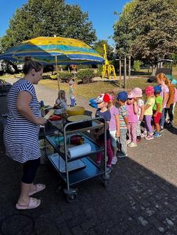 An einem heißen Sommertag führten wir unser Wasserfest durch mit vielen tollen nassen Spielen und selbstgebastelten Wasserbomben. Das war ein riesen Spaß. Die Kinder konnten sich nebenbei unter dem Sprenger erfrischen oder sich und andere Kinder mit Wasserspritzutensilien nass machen.