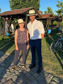 Gut „behütet“ unterwegs – Bürgermeisterin Anja Heinrich und LR-Redakteur, Frank Claus.