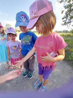 Die Kinder suchten Sand, Steine, Stöckchen, Gräser, Flechten und Tannenzapfen, die ins Terrarium Schicht für Schicht eingebracht wurden. Die Rangerinnen standen beratend zur Seite und erklärten den Kindern ihre Funde. Die Kinder fanden Pflanzen wie Ampfer, Habichtskraut, Rotklee, verschiedene Gräser und Schafgarbe. Die Vielfalt machte die Wiese zu einem echten Paradies für Insekten und anderes Getier. Nicola hatte extra für uns echte Heide zum Sehen, Fühlen und Riechen aus dem Naturpark mitgebracht, so dass wir den Lebensraum Heide hautnah zum Erleben und Entdecken nachempfinden konnten. Mit den Keschern liefen die Kinder über die Wiese und fingen Käfer, Spinnen, Grashüpfer und Mistkäfer, um diese mit Becherlupen näher zu betrachten. Sie kamen aus dem Staunen nicht heraus. Andreas fand sogar eine Gottesanbeterin und setzte diese mit ins Terrarium, wo sie hungrig einen Grashüpfer verspeiste. Es war imposant dies zu beobachten. Der Förster fuhr auch sein Revier ab, so dass die Kinder auch seinen wachsamen Dackel begrüßen konnten. Als die Sonne immer höher stieg, machten wir uns auf den Rückweg, um uns mit Eis zu erfrischen. Wir danken Nicola und Leonie für den erlebnisreichen Vormittag und freuen uns schon auf den Pomologischen Garten im September. Schön, dass wir eine zertifizierte Naturparkkita sind und so viel über unsere Pflanzen und Tierwelt lernen, erleben und entdecken dürfen. Das Umweltbewusstsein unserer Kinder wird pädagogisch wertvoll geprägt.