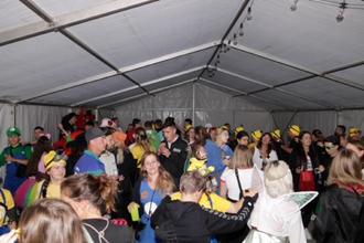 Am Abend stand der Sportlerball unter dem Motto „Helden der Kindheit“ auf dem Programm. Die Mannschaften hatten sich viele kreative Ideen einfallen lassen und zauberten den Gästen ein Lächeln ins Gesicht. Minions am Bierwagen, Obelix am Grill, Kapitän Hook im Gespräch mit Super Mario oder die Baywatch-Retter mitten im Getümmel. Bei prächtiger Stimmung war die Tanzfläche durchweg gut gefüllt, und der Abend klang in geselliger Runde aus.